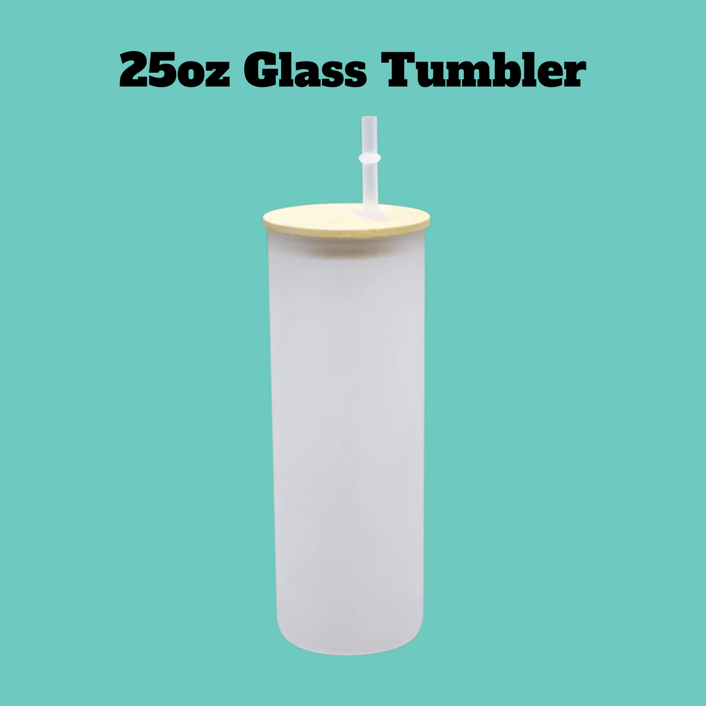 Grab this 25oz frosted glass tumbler for the ultimate gift idea. Comes with Bamboo Lid and Straw.