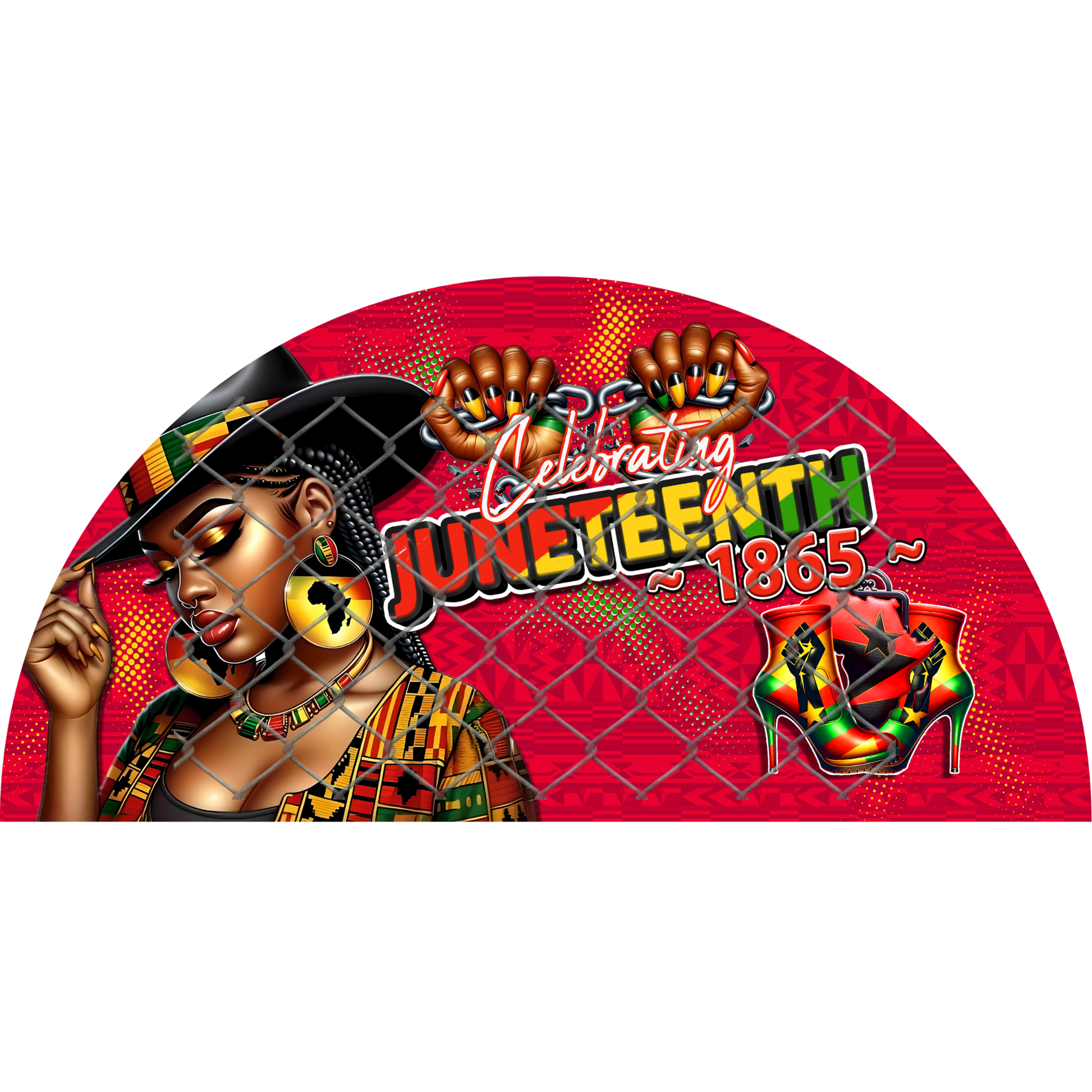 JUNETEENTH CLACK FAN SUBLIMATION TRANSFERS - Transfer is measured at 26.75" x 13.50" to fit our Clack Fans. FAN NOT INCLUDED.