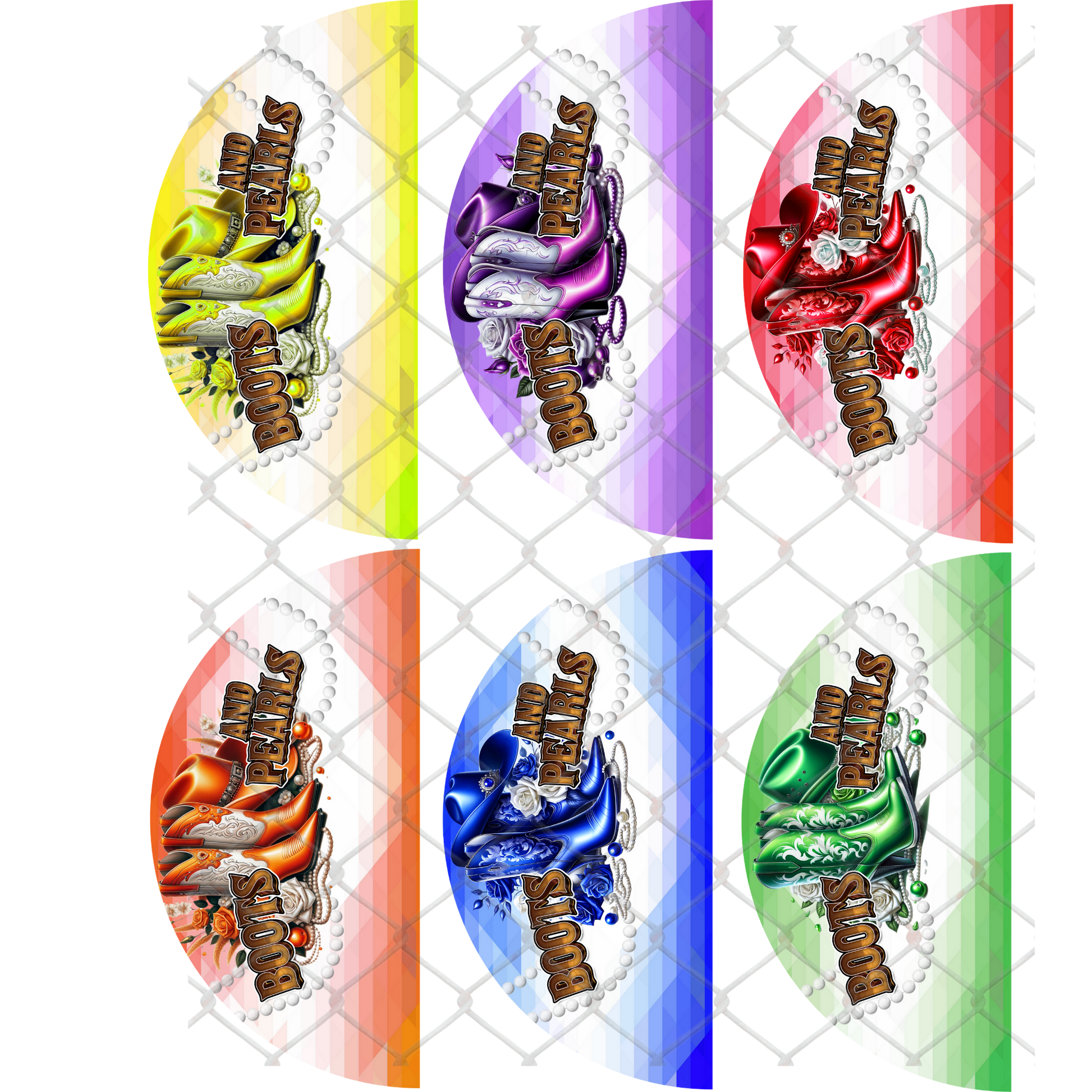 BUNDLE (6PK) - BOOTS & PEARLS (COLORS) CLACK FAN TRANSFERS - (Sublimation) (Ready to Press)