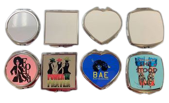 Check your makeup anywhere with this Compact Mirror. Designed to be easily tucked away in your handbag, makeup bag or makeup kit. Sublimate your favorite design on the top to personalize just for you!