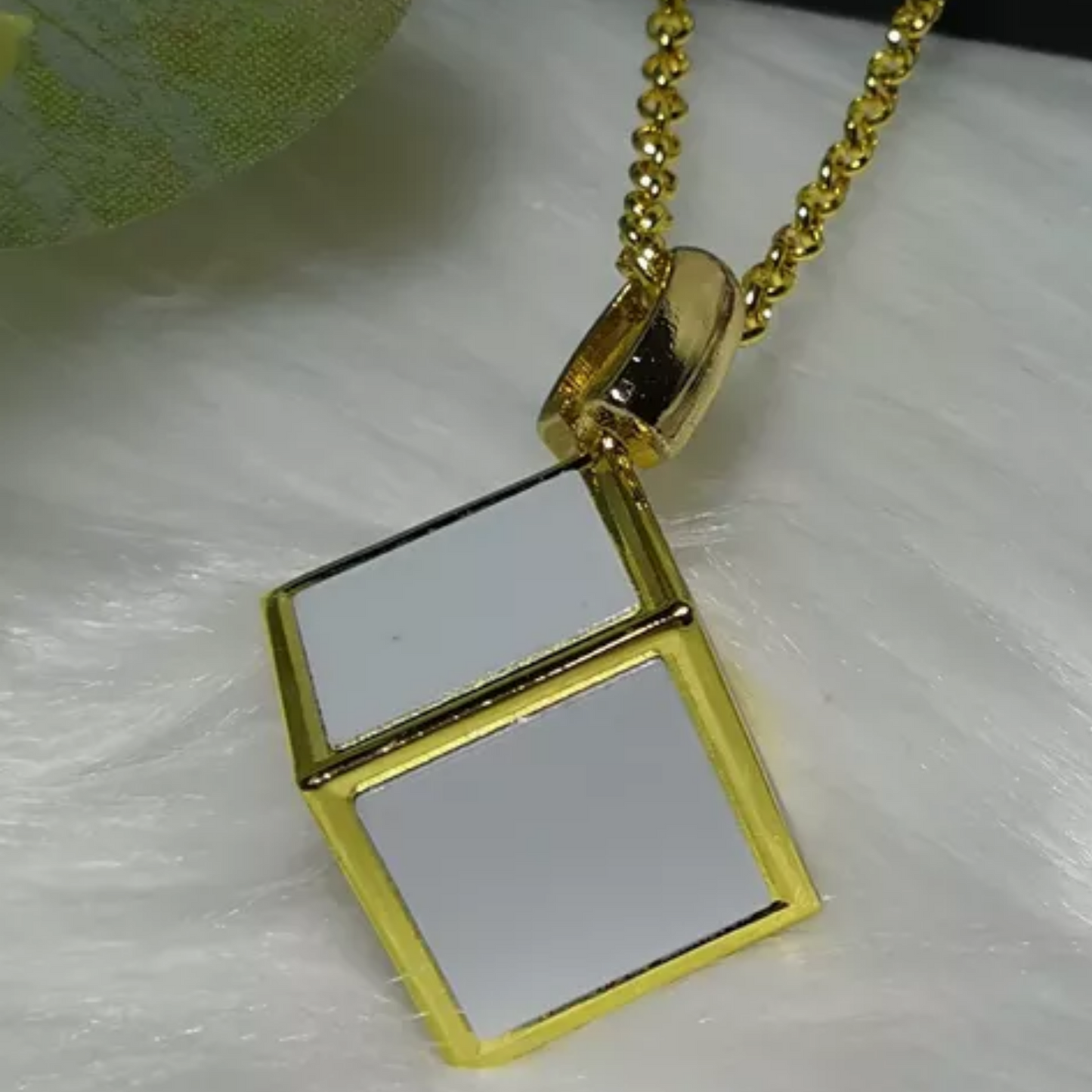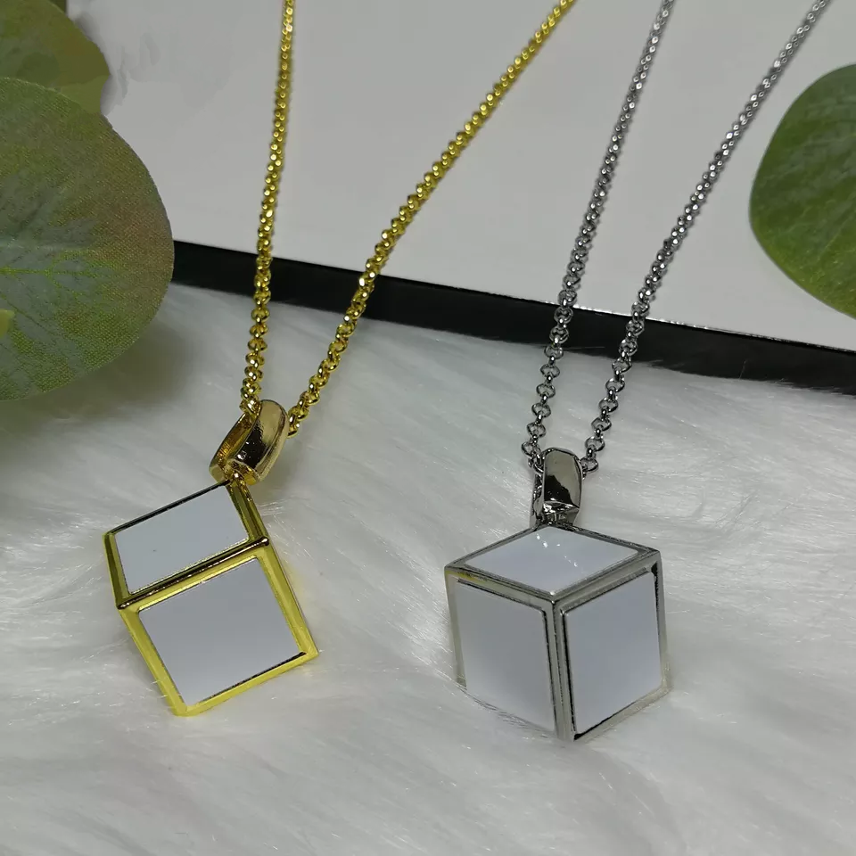 Design this amazing cube necklace for the ultimate gift. Comes with 18" chain. Material is Zinc Alloy.