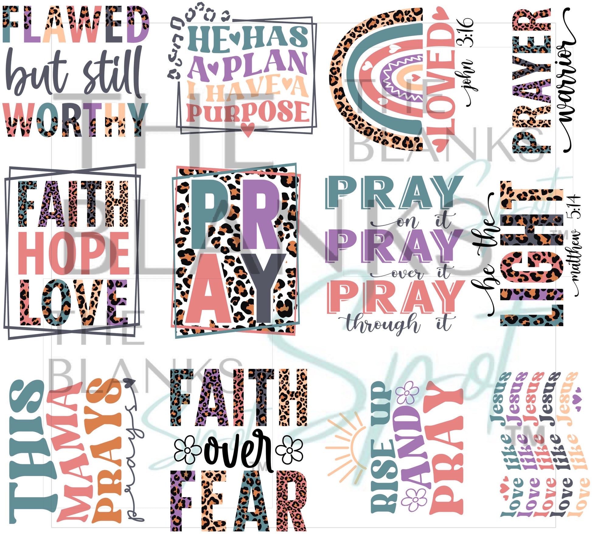 This bundle has 12, 11inch sublimation transfers for larger items or choose 3.5" for pockets or cups.