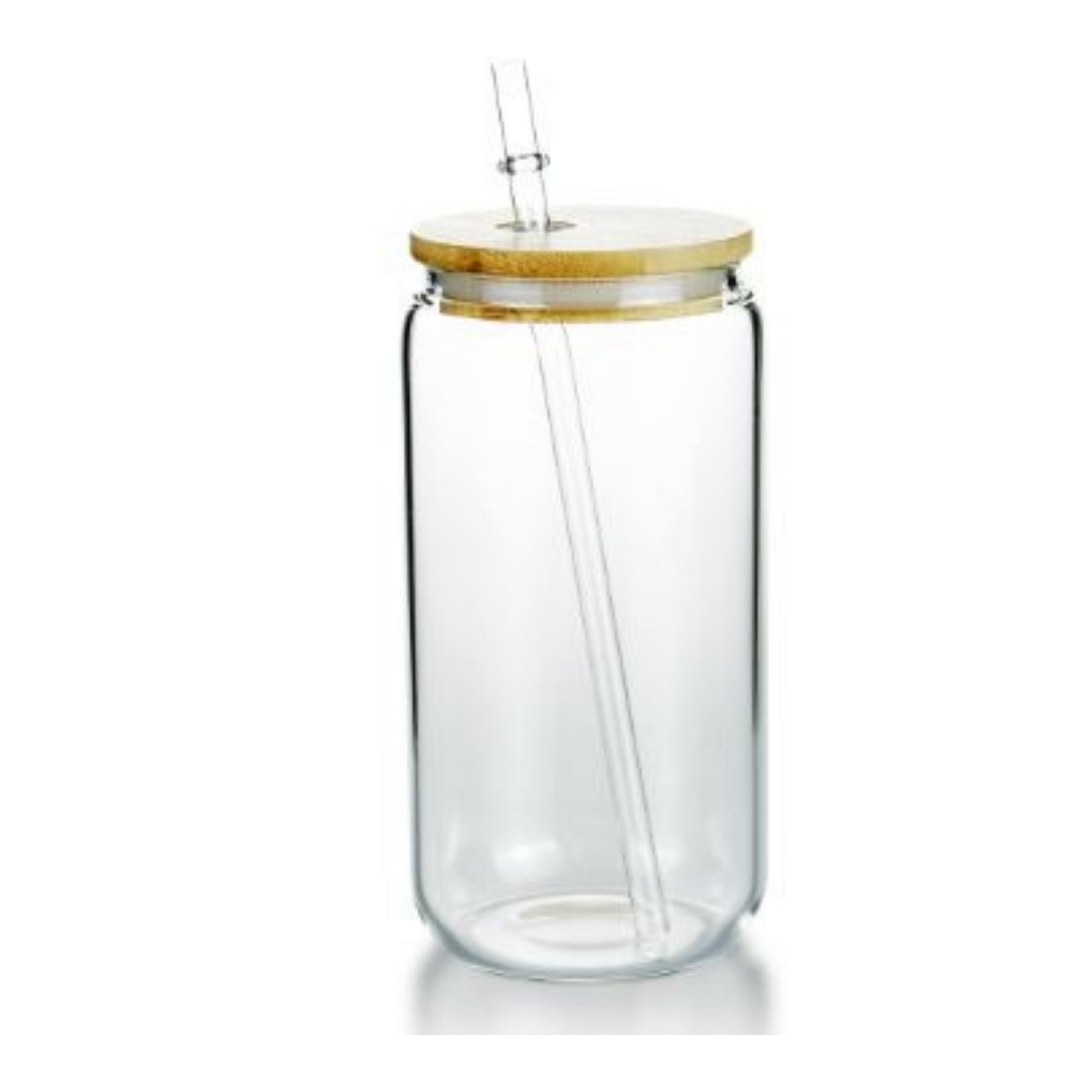 Frosted or Clear Sublimation Jar (16oz). Both comes with Bambo Lid and Plastic Straw.