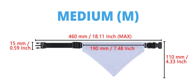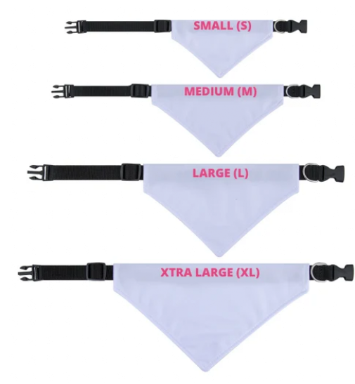 Pet Bandana with Collar for Sublimation. Comes in four sizes. See sizes in pictures for reference.