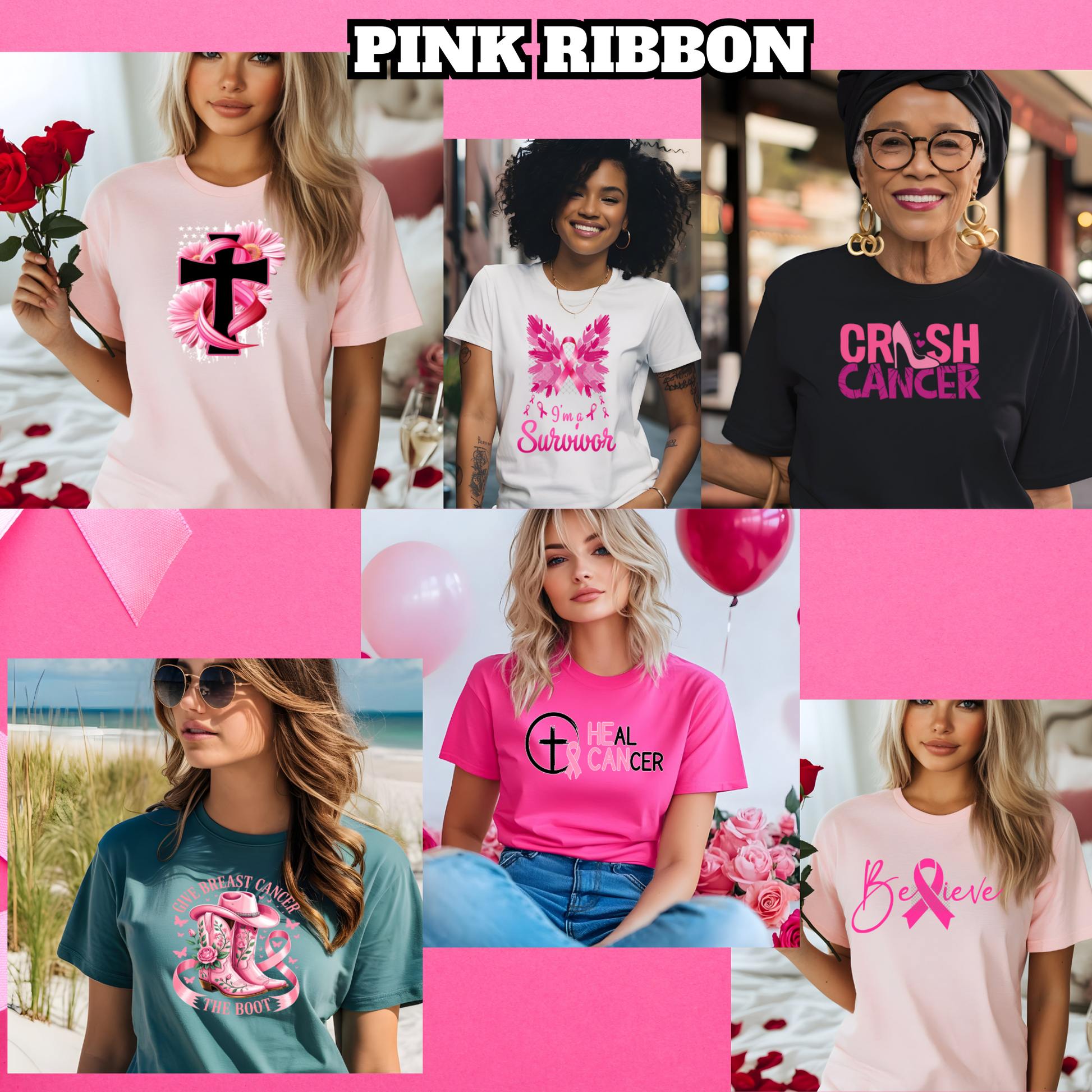 PINK RIBBON Collection (Full Color Clear Film Screenprint Transfer)