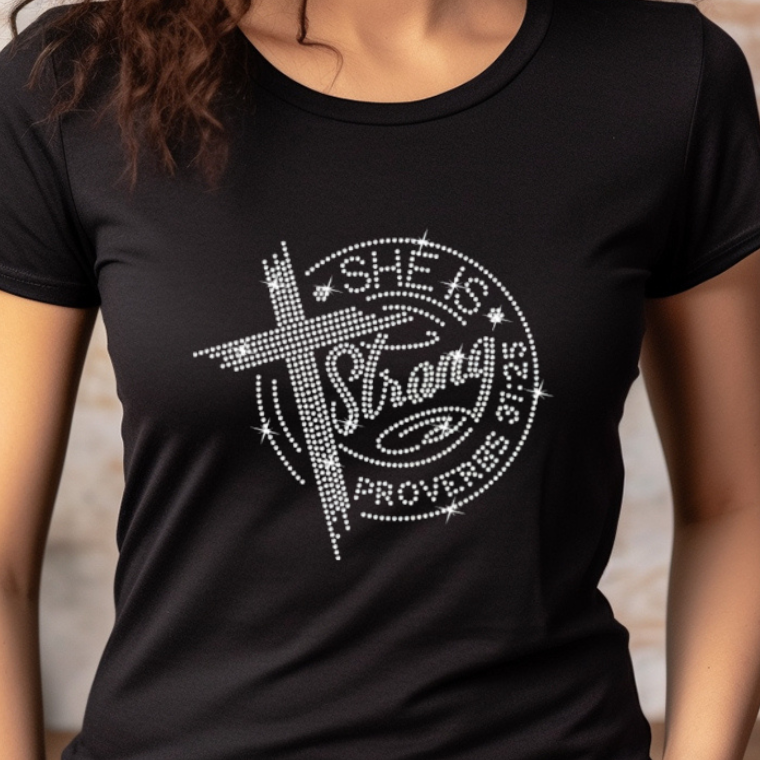 She is Strong (Rhinestone Transfer)- Transfer Size 9.4" x 8.6"