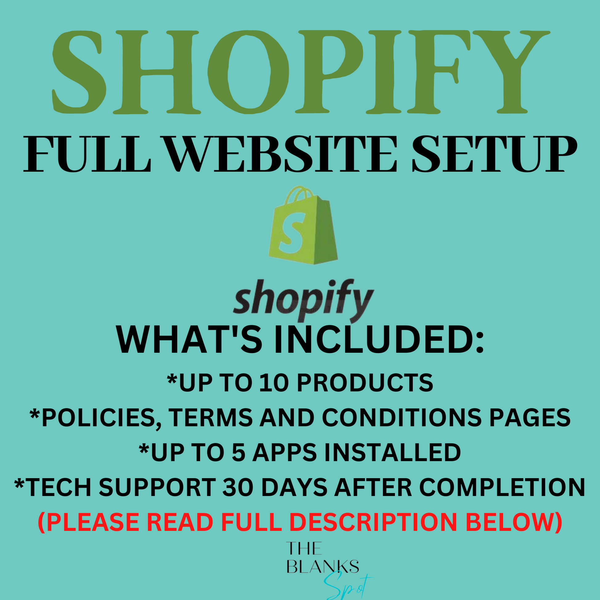 SHOPIFY FULL WEBSITE SETUP (PLEASE READ ENTIRE DESCRIPTION BELOW)