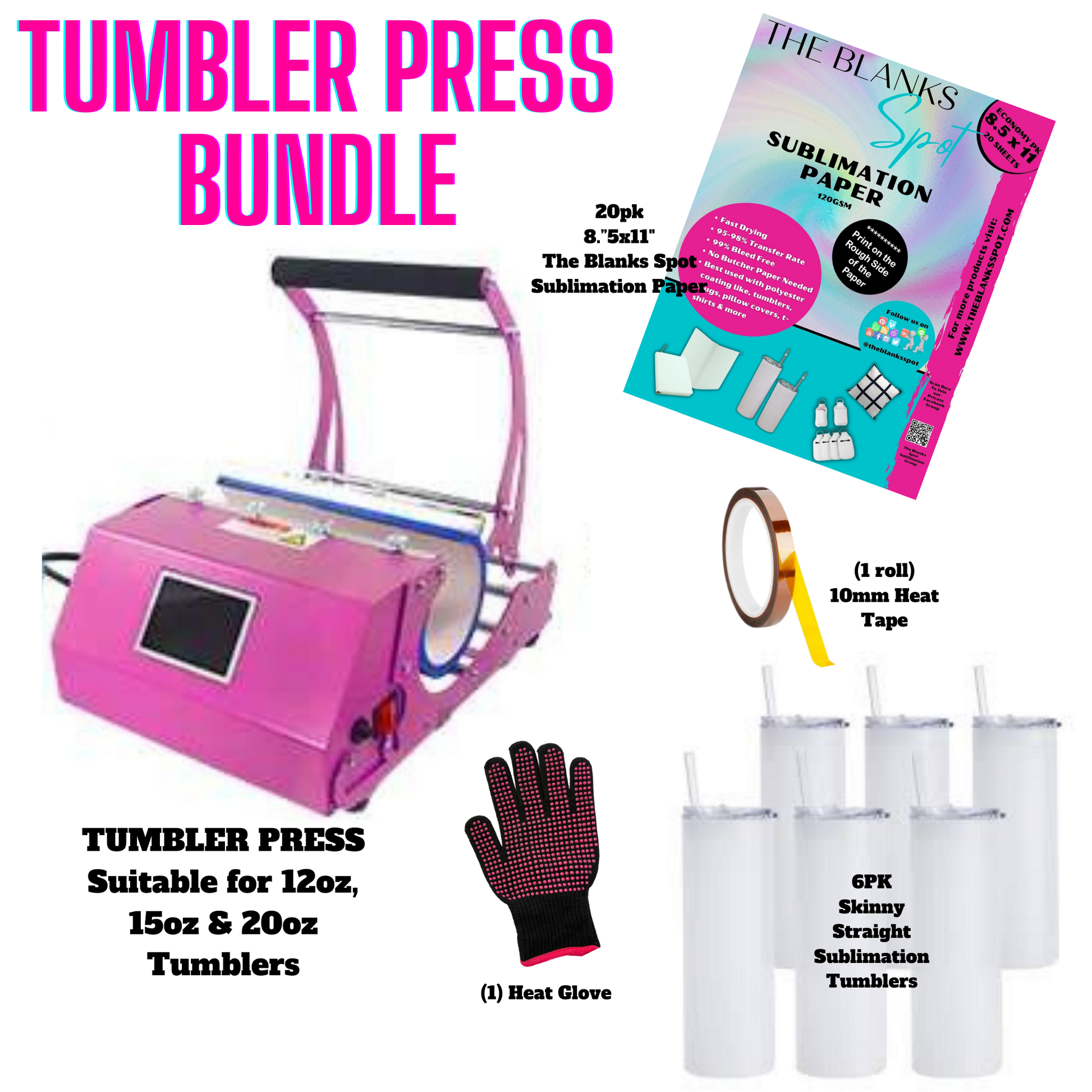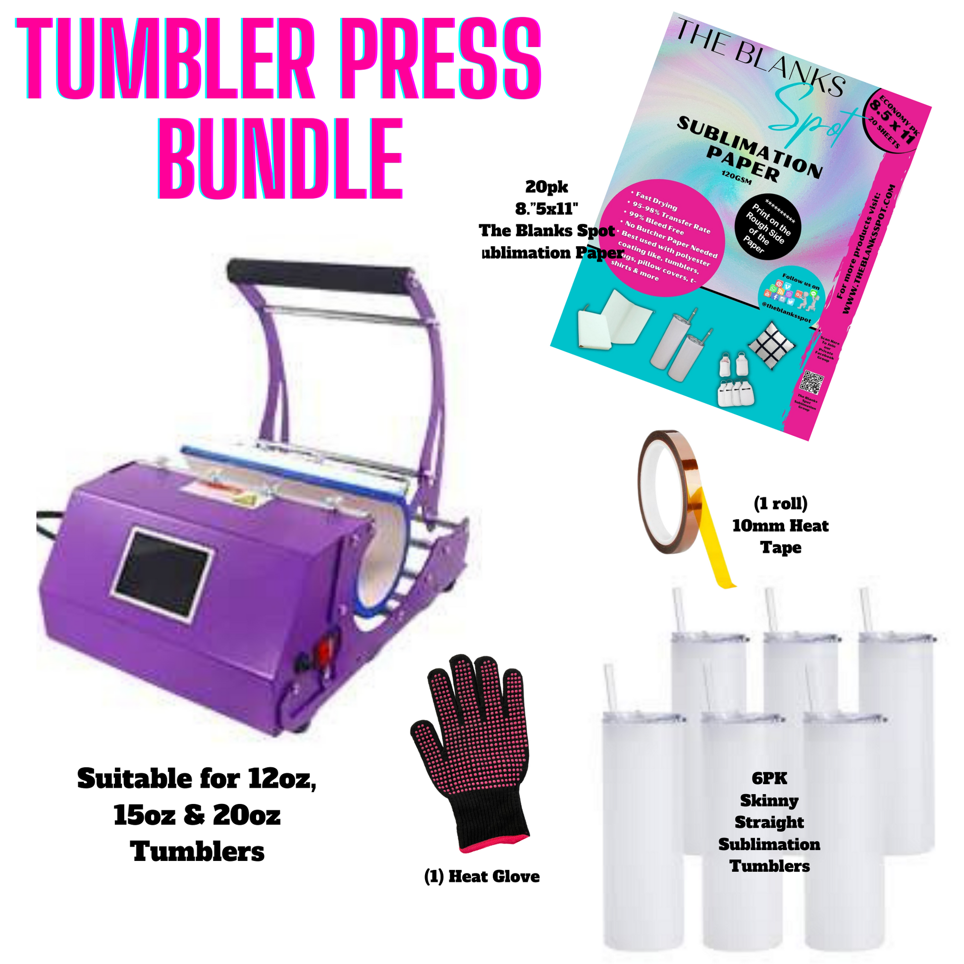 No More Ovens!!! Crafters you are going to love this Tumbler Press!!!! It is a Game Changer!!! Comes with TBS Sublimation Paper (20pk), 6pk Sublimation Tumblers, Heat Tape and a Glove.