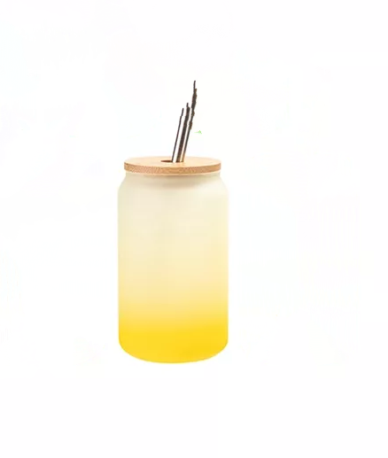 Frosted Gradient Sublimation Jar (13oz) - Comes with bamboo lid and metal straw for 13oz and Plastic straw. Great for any gift idea...