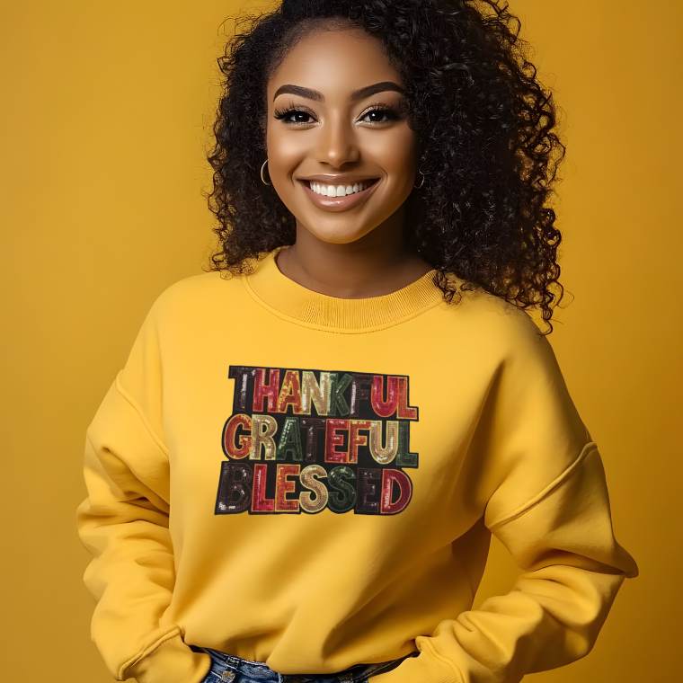 Thankful Grateful Blessed Heat Transfer Patch 11"